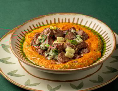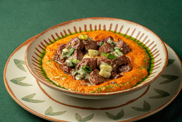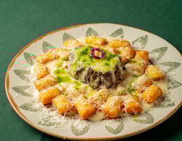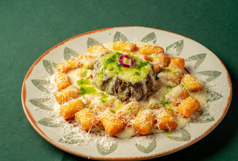 Nhoque ao molho bechamel com medalhão de filé mignon
