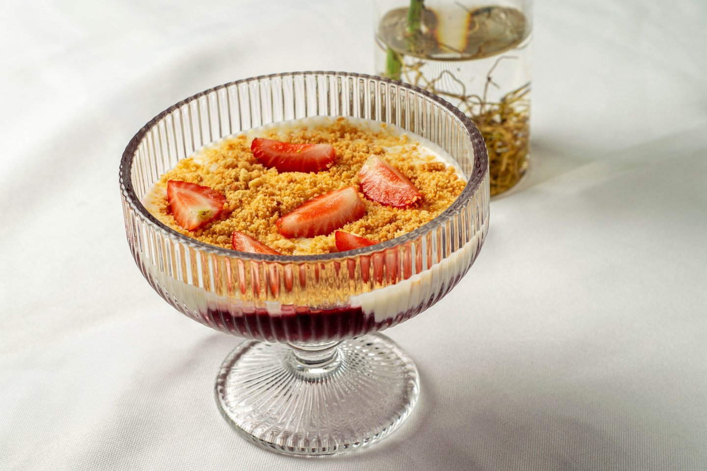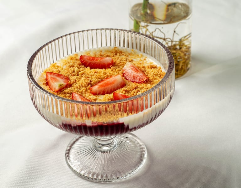 Creme de limão com geleia de frutas vermelhas, morangos frescos e massa crocante de sablée