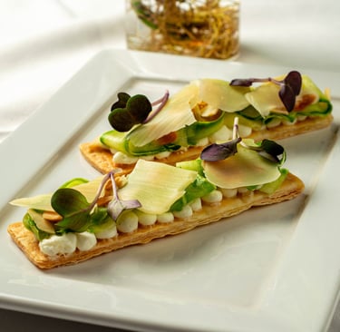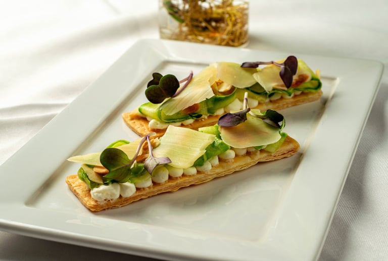 Tarte folhada de abobrinha marinada no limão siciliano e queijo cremoso